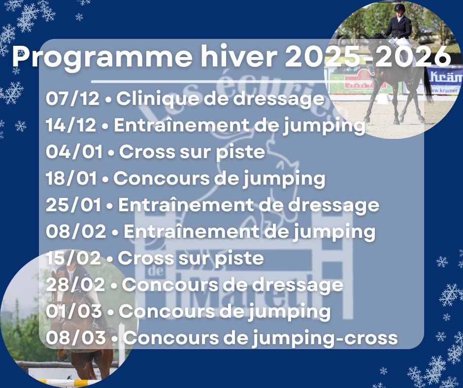 Durant la saison officielle, nous organisons plusieurs concours de dressage, d’obstacle et de cross.